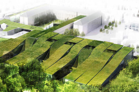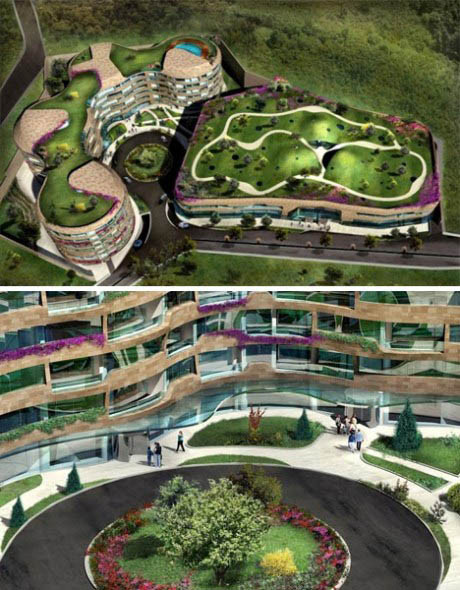 土耳其One & Ortakoy建筑群 這個(gè)名為“One & Ortakoy”的多功能建筑群位于土耳其的伊斯坦布爾。它擁有彎曲的有機(jī)形態(tài)以及被綠草和鮮花覆蓋的起伏屋頂,與所在的美麗山區(qū)融為一體。這個(gè)建筑群位于奧爾塔科伊附近地區(qū),現(xiàn)正在建造之中。它由兩座建筑構(gòu)成,正面使用天然石頭打造。其中一座是住宅建筑,另一座則是商用建筑。 4.法國(guó)綠屋頂中學(xué)