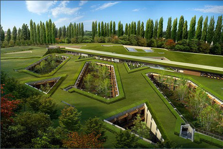 英國(guó)薩里地下綠化帶酒店 英國(guó)薩里赫斯哈姆高爾夫俱樂(lè)部的地下五星級(jí)酒店由ReardonSmith建筑師事務(wù)所設(shè)計(jì),酒店內(nèi)建有豪華溫泉會(huì)所以及高爾夫設(shè)施。為了防止不必要的土地開(kāi)發(fā),英國(guó)建立了綠化帶。通過(guò)棲身地下這種方式,這家五星級(jí)酒店滿足了有關(guān)城市發(fā)展的限制條件。此外,這一設(shè)計(jì)也同樣能夠降低對(duì)交通流量的影響。由于地上建筑棲身于現(xiàn)有林地之內(nèi),附近當(dāng)?shù)鼐用竦囊曇安粫?huì)受到影響,可以盡情欣賞那不可觸摸的自然景色。 10.北京創(chuàng)意區(qū)綠化帶