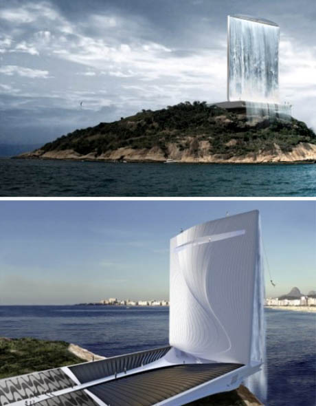 巴西巨型發(fā)電塔 RAFAA建筑設(shè)計(jì)事務(wù)所為2016年巴西里約熱內(nèi)盧奧運(yùn)會(huì)設(shè)計(jì)的“太陽(yáng)能城市塔”可在白天利用太陽(yáng)能發(fā)電,日落后再利用抽蓄水系統(tǒng)發(fā)電。它的最大亮點(diǎn)當(dāng)屬一個(gè)又大又高的瀑布,好像來(lái)自天空,給人一種超現(xiàn)實(shí)的感覺(jué)。發(fā)電塔將為奧運(yùn)會(huì)提供大量電量,象征大自然力量的瀑布傾瀉而下場(chǎng)面只在特定場(chǎng)合時(shí)出現(xiàn)。 |