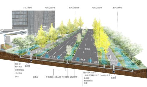 9、考慮到原有人行道板磚有一定厚度的混凝土墊層,為減少破碎、換土的工作量,可采用鉆孔或開槽的方法,提高基層的透水性。