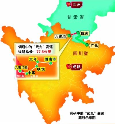 武九高速公路起點(diǎn)位于武都區(qū)桔柑鄉(xiāng)賈家坪村,與武罐高速公路以樞紐立交相接,終點(diǎn)位于文縣青龍橋(甘川界),順接綿陽至九寨溝高速公路,路線全長100.6公里,估算投資179.61億元。