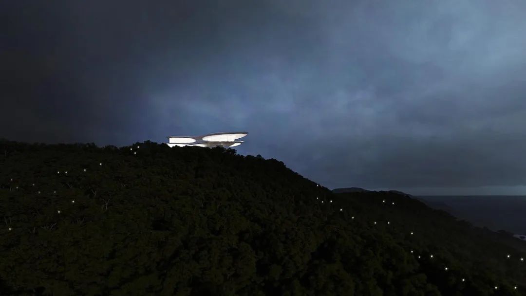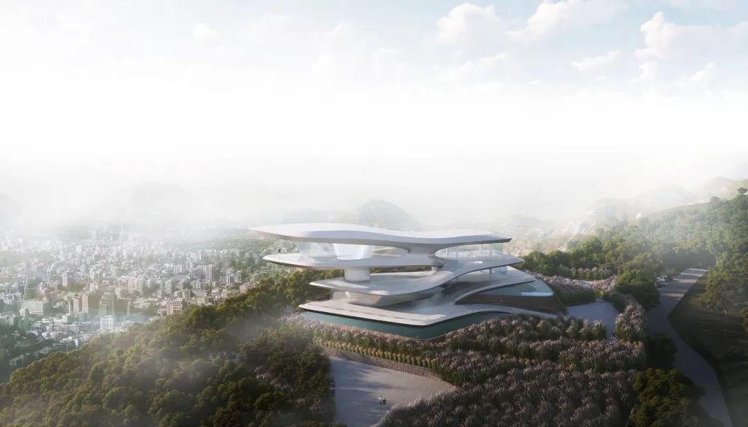 本次設(shè)計(jì)項(xiàng)目——云海驛站位于鹽田區(qū)三洲田森林公園核心區(qū)的海拔 378m 馬巒山山頂,總占地800平方米,是鹽田區(qū)半山公園帶重要景觀節(jié)點(diǎn)。項(xiàng)目背靠三洲塘水庫,直面大鵬灣,擁有 360°一覽山海城的獨(dú)特視景,是馬巒山絕佳的觀景瞭望之地。
