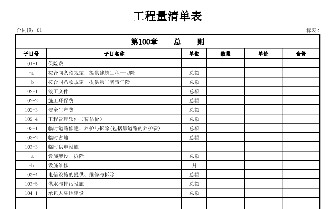 公路清單預算100章的編制