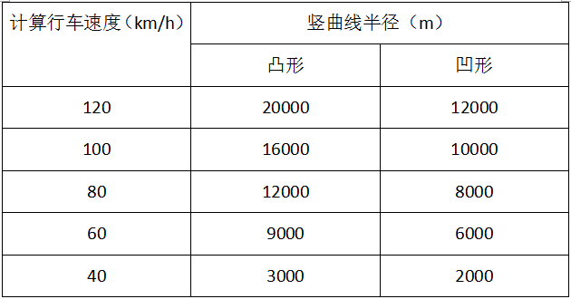 一般情況下:豎曲線應(yīng)選用較大半徑為宜。