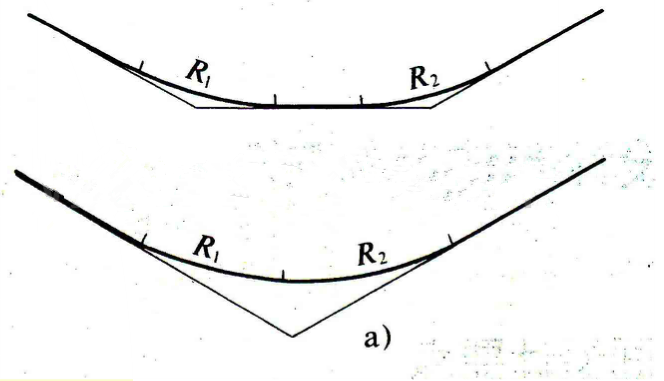 反向曲線:相鄰反向豎曲線之間,為使增重與減重間和緩過渡,中間最好插入一段直坡段。若兩豎曲線半徑接近極限值時,這段直坡段至少應(yīng)為計算行車速度的3S行程。當半徑比較大時,亦可直接連接。