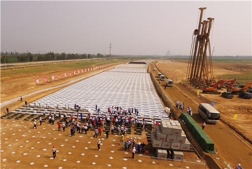 由于CFG樁改善了碎石樁的剛性,使其不僅能很好地發(fā)揮全樁的側(cè)阻作用,同時(shí)也能很好地發(fā)揮其端阻作用。因此,得以廣泛采用,并取得良好的經(jīng)濟(jì)和社會(huì)效益。CFG為樁體中摻加適量石屑、粉煤灰和水泥加水拌和,制成一種粘結(jié)強(qiáng)度較高的樁體,與樁間土和褥墊層一起構(gòu)成CFG樁復(fù)合地基。樁,樁間土與基礎(chǔ)之間必須設(shè)置一定厚度的褥墊層,即褥墊層是高粘結(jié)強(qiáng)度樁復(fù)合地基的一部分。