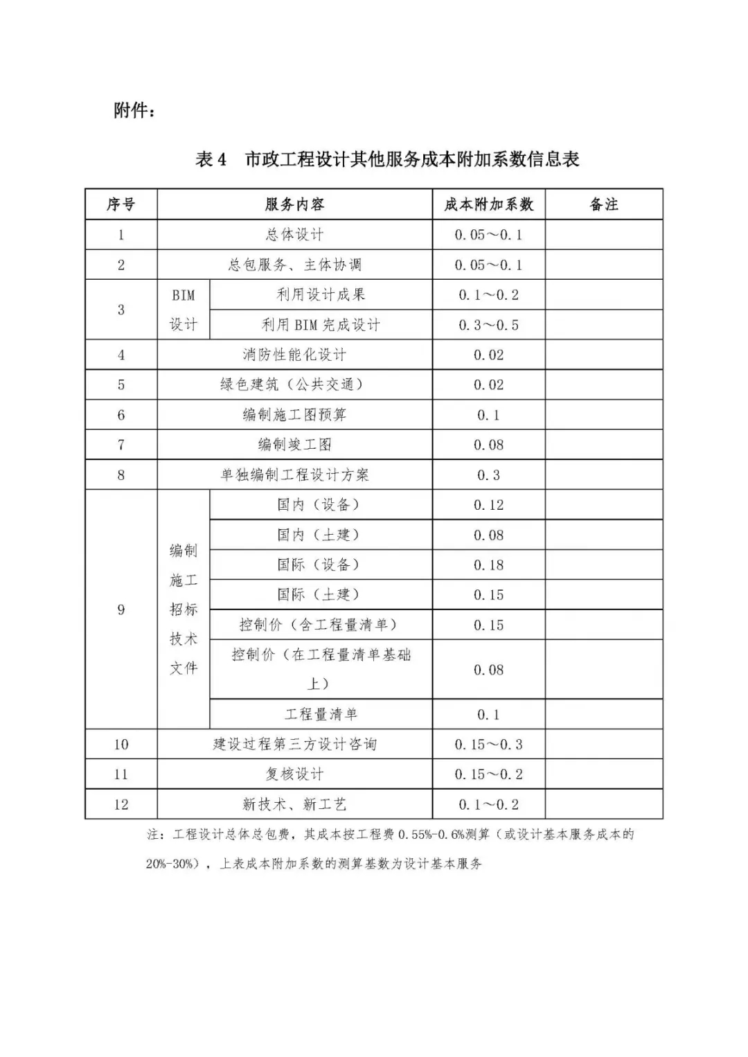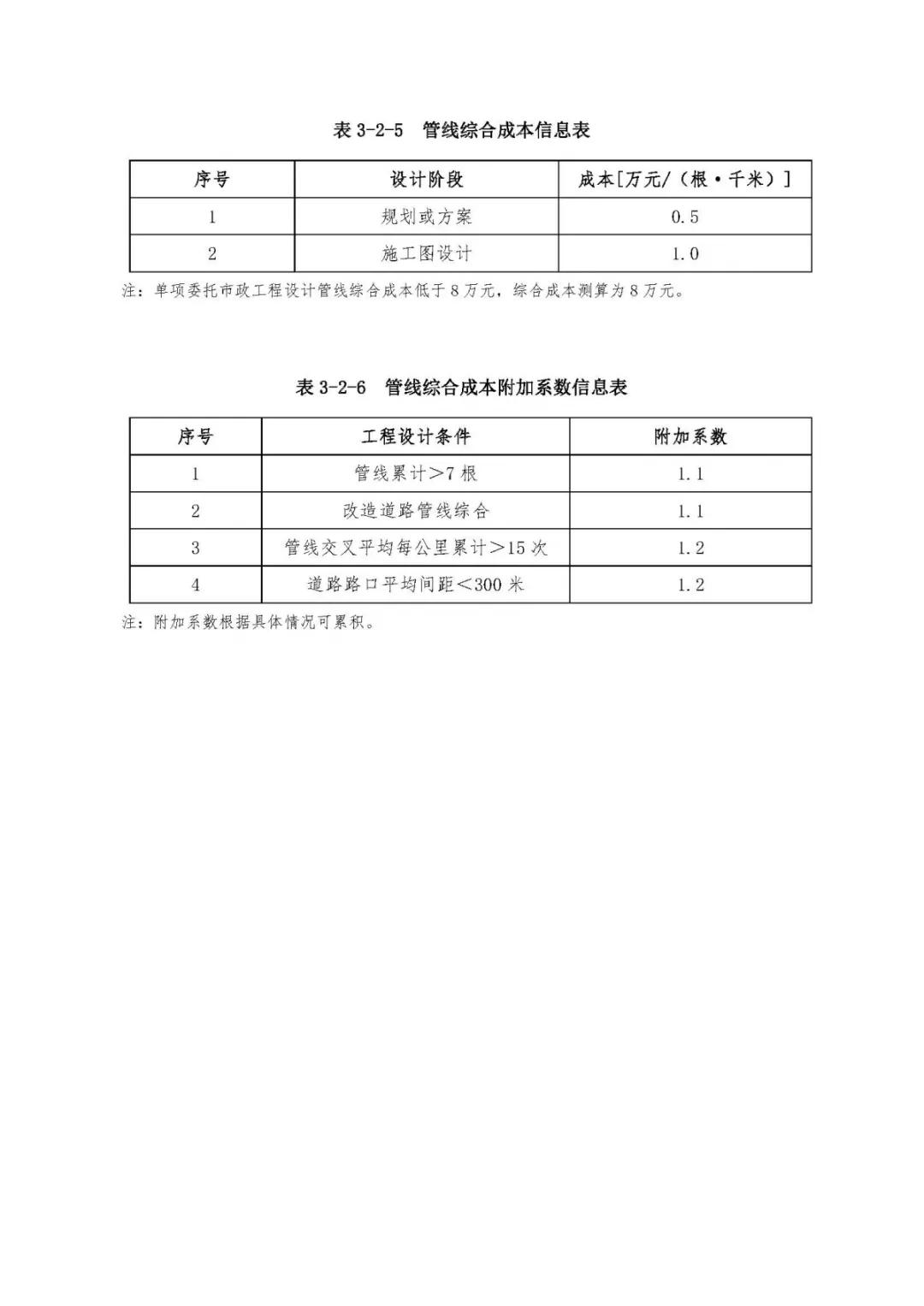表3、市政工程設計復雜程度影響系數及成本附加系數信息表