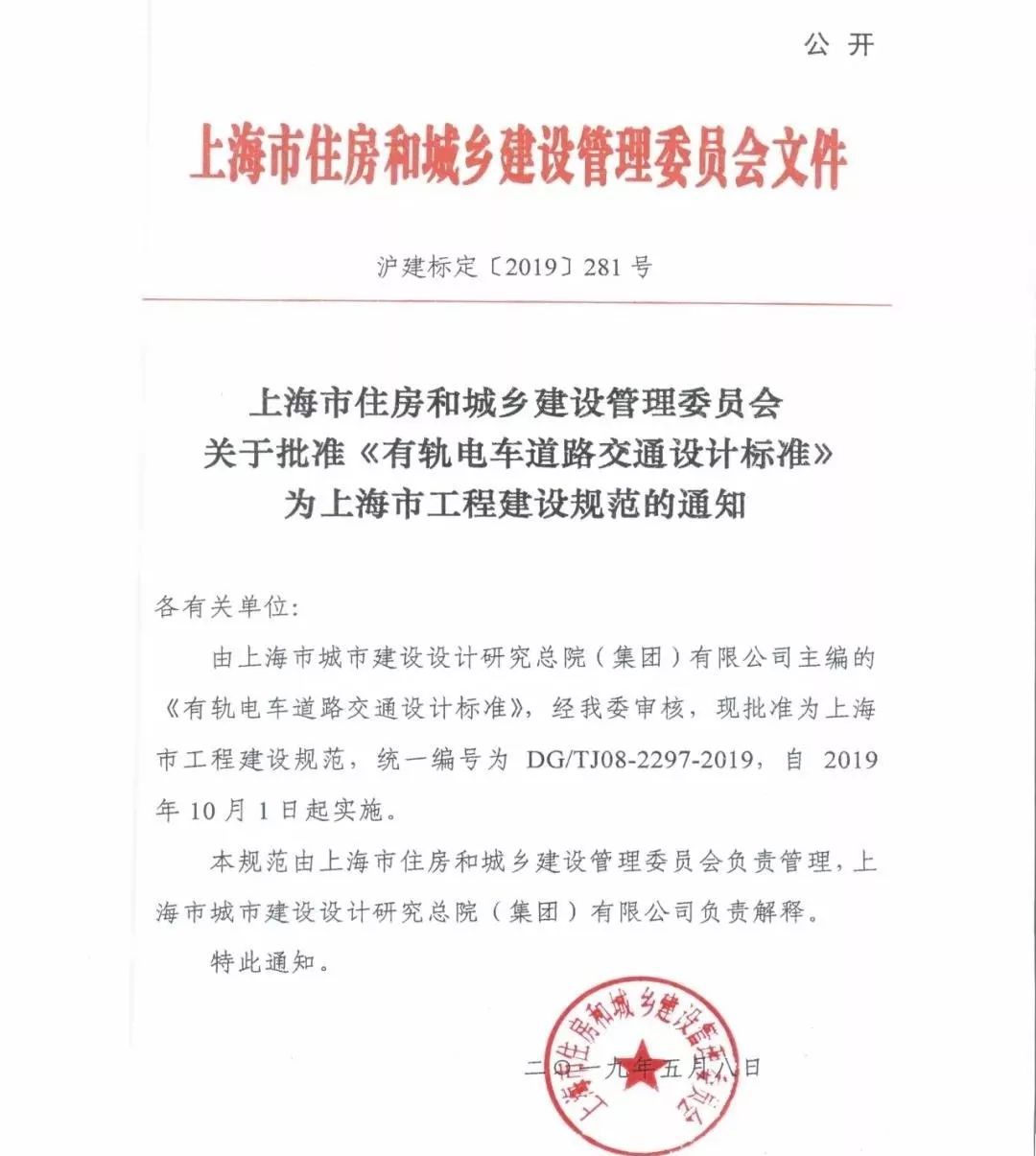 上海市工程建設(shè)規(guī)范《有軌電車道路交通設(shè)計(jì)標(biāo)準(zhǔn)》發(fā)布