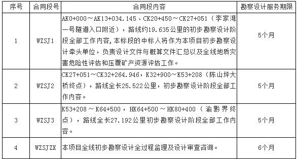 萬盛至正安高速公路重慶段啟動初步勘察設(shè)計,2019年6月4日發(fā)布了初步勘察設(shè)計及技術(shù)咨詢服務(wù)招標(biāo)公告。據(jù)悉萬盛至正安高速公路重慶段劃分4個合同標(biāo)段。估算總投資162.7億元,建安費約118.4億元。