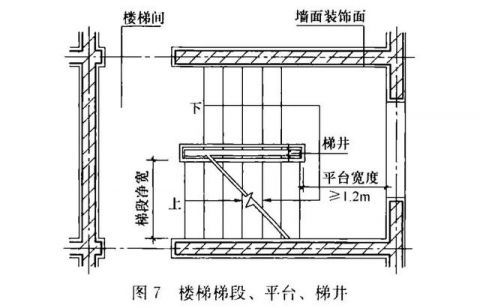新規(guī)范:6.8.4 當(dāng)梯段改變方向時,扶手轉(zhuǎn)向端處的平臺最小寬度不應(yīng)小于梯段凈寬,并不得小于1.2m。當(dāng)有搬運(yùn)大型物件需要時,應(yīng)適量加寬。直跑樓梯的中間平臺寬度不應(yīng)小于0.9m。