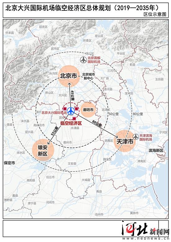 《北京大興國(guó)際機(jī)場(chǎng)臨空經(jīng)濟(jì)區(qū)總體規(guī)劃(2019—2035年)》區(qū)位示意圖。
