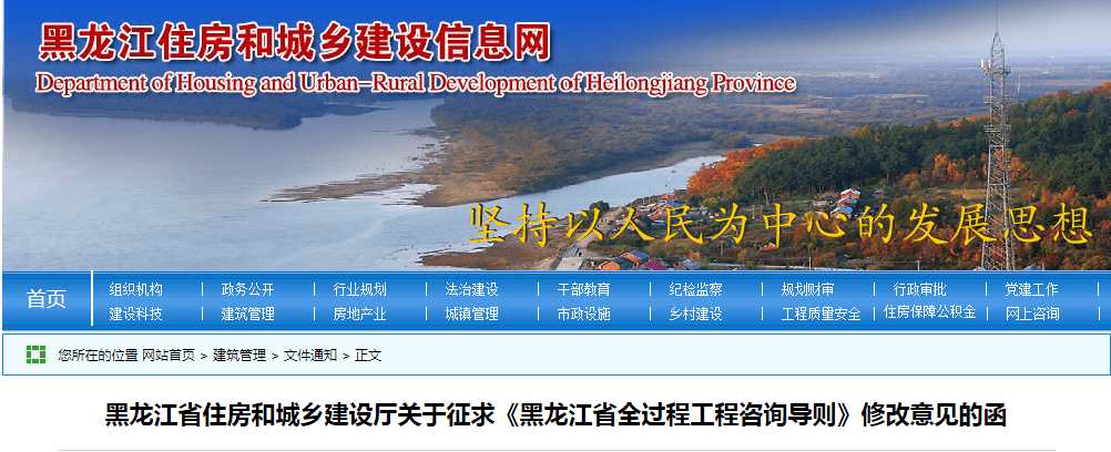 黑龍江省住房和城鄉(xiāng)建設(shè)廳關(guān)于征求《黑龍江省全過程工程咨詢導(dǎo)則》修改意見的函