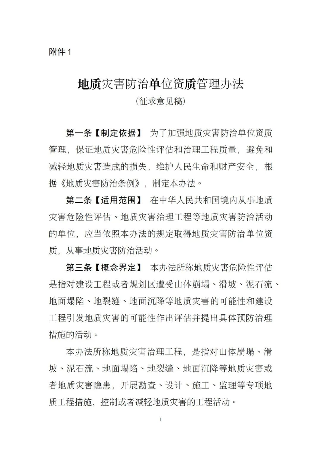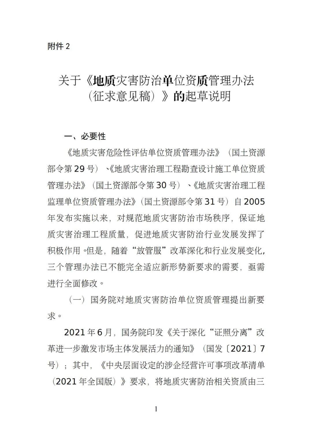 1.地質(zhì)災(zāi)害防治單位資質(zhì)管理辦法(征求意見稿)2.關(guān)于《地質(zhì)災(zāi)害防治單位資質(zhì)管理辦法(征求意見稿)》的起草說明