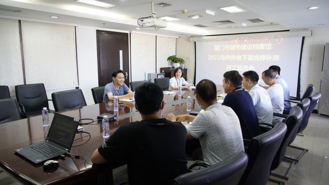 6月27日下午,廈門市第十一次(2022年度)島內(nèi)外地下管線修補(bǔ)測項(xiàng)目開工動(dòng)員會在建設(shè)大廈召開。市城建檔案館以及項(xiàng)目探測單位、監(jiān)理單位和數(shù)據(jù)建庫單位的分管領(lǐng)導(dǎo)和項(xiàng)目主要人員參加會議。