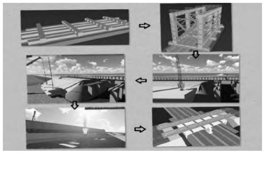 BIM技術與其他技術最大不同就是使用參數代替數據信息進行建模。將公路工程中各種數據信息以參數的形式表示,對不同參數進行分析,實現公路工程三維、立體模型的建立,能夠準確、清晰地將不同施工環節以不同參數的關系表現出來[4]。通過建立施工現場及設備布置模型,一比一模擬道路實際施工場地,自動定義施工設施的4D屬性。點取任意設施實體,可查詢其名稱、類型、型號以及計劃設置時間等施工屬性,并可進行場地設施的信息統計等,將場地布置與施工進度對應,形成4D動態的現場管理[5]。通過建立三維施工現場模型,布置設備放置位置、控制進場時間、綜合管理料區、模擬吊裝過程,讓各區段參與方直觀了解工作進度和施工流程,對機械配置、勞動力配置、安裝時間進行調控,將一定程度上解決因施工現場布置不當造成的施工質量和工期延誤問題,施工現場模擬見圖2。