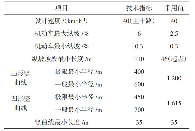 表 2 縱斷面線形標準及設計采用值匯總