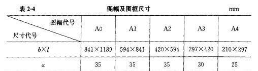 (1)圖幅及圖框尺寸應符合表2-4的規定