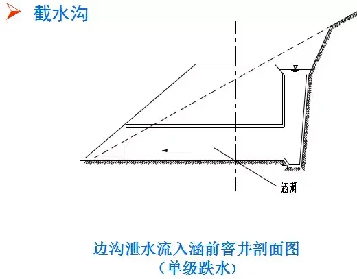 ③截水溝水流不應(yīng)引入邊溝,當(dāng)必須引入時,應(yīng)增大邊溝橫斷面,并進(jìn)行保護(hù);