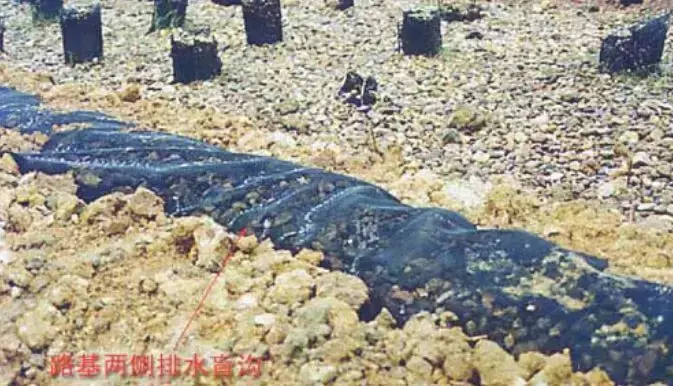 (1)路線高度與原地面相仿,排水困難,距地面有滲透性土層。