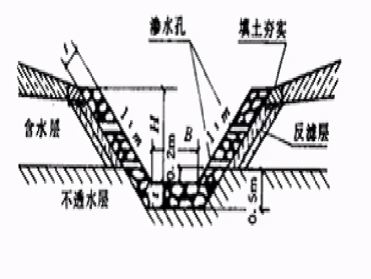 ② 截水滲溝應在滲流上游一側(cè)溝壁進水、下游處溝壁應不透水并設置相應的防滲層;