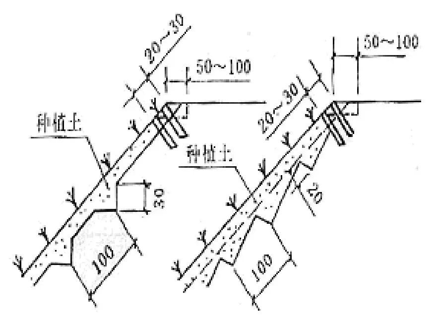 植草是一種施工簡單、造價經(jīng)濟的有效坡面防護方法,適用于草類生長的土質(zhì)路堤和路塹邊坡,一般要求邊坡坡度緩于1:1.25時,容許地表水流速0.4~0.6m/s,單級坡高在6.0m以內(nèi)。種草時將草籽加土拌和,均勻播種在表土適當翻松的坡面上,必要時坡面加鋪5~10cm的種植土層,以有利種草成活和生長。