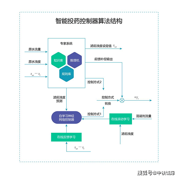 首先通過前饋專家模型采集分析源水流量、濁度、 PH 值 等數據信息并快速建模,再利用人工神經網絡對模型進行深度學習,通過多步預測、滾動優化和反饋校正識別出加藥量和變量之間的對應關系,最終得出最精準的藥劑投加量?;苍浦悄芗铀幭到y可通過軟件平臺對工藝過程進行全自動監控、診斷,投藥全程自動化控制,設備故障自動進行切換控制;實現對設備運行、藥劑消耗、水質監控等方面進行實時診斷、數據分析、故障預測及報警 。