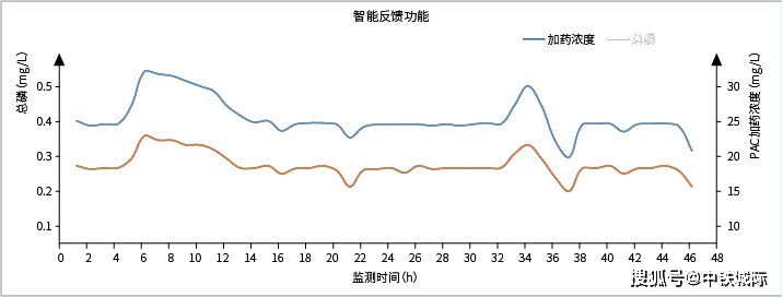 智能反饋功能可根據出水 SS 、 PH 等相關指標的高低來判斷加藥量是否合適,若實際出水監測值和設計值出現較大偏差,程序會自動修正加藥量,達到合理的出水指標。