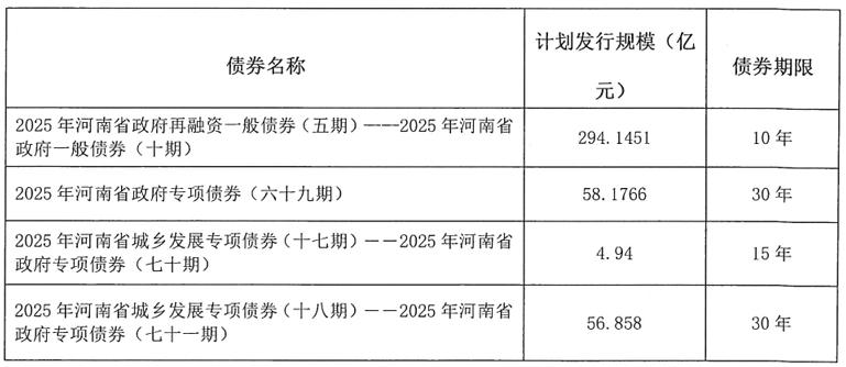 【大河財(cái)立方消息】10月13日,河南省財(cái)政廳披露2025年河南省政府一般債券(十期)、專項(xiàng)債券(六十九至七十八期)發(fā)行文件。