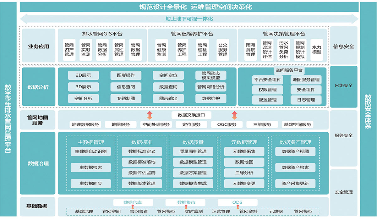 采用BIM+GIS、三維建模技術(shù),建立城市排水基礎(chǔ)設(shè)施數(shù)字三維模型,立體疊加展示地上、地下的“廠-站-網(wǎng)-河”基礎(chǔ)設(shè)施。